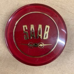 VW emblem i kromad plast i skapligt skick, fästen på baksidan saknas. Mått. 110mm diam.