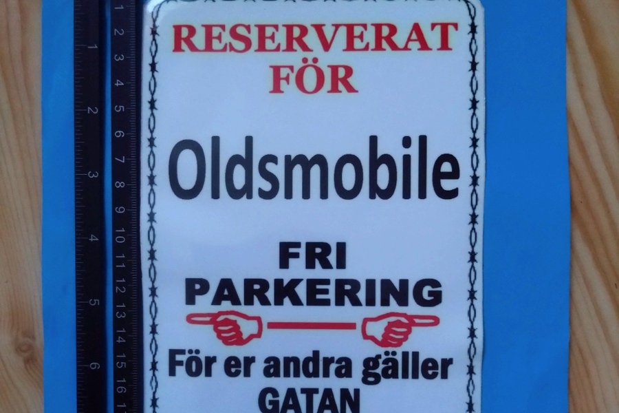 Oldsmobile - Skylt - Fri Parkering Dekal