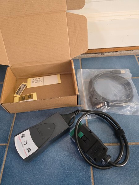 PSA XS Evolution diagnostikverktyg för Peugeot, DS Spirit och Citroën. Modellnummer A.1281 Z och AC965250. Inkluderar en USB-kabel.