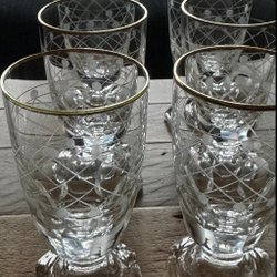 Ett ljust blått, de övriga i klarglas. Höjd ca 5,5-6 cm. Bra skick.