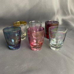 Sex stycken färgglada snapsglas. Perfekt för festliga tillfällen.diam5cm, höjden8 cm
