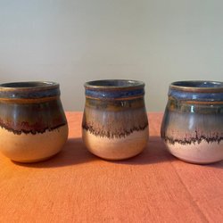 9 cm höga, diameter upptill 7 cm, nertill 5,5 cm.