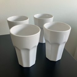 4 st likörglas i spiralmönster, 10 cm höga, 5 cm i diameter. Troligen glas från Luminarc, ett franskt varumärke.