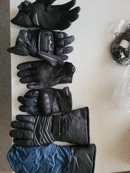 Tre par svarta handskar med förstärkningar och justerbara remmar för en säker passform. Handskarna har en robust design. För sommar, vår och höstkörning. Storleken är 9,5-10