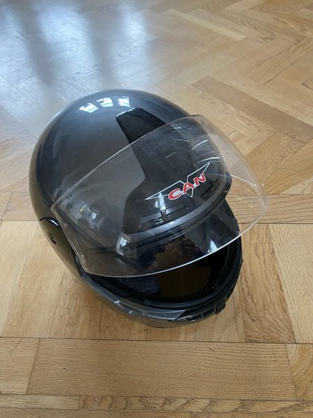 Märke CAN med ofärgat visir. Storlek 59-60. E-märkt o godkänd f mc o moped. Aldrig tappad.