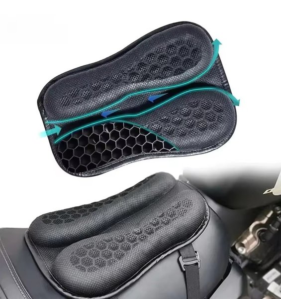 Denna motorcykelsätesdyna är designad för att ge förbättrad komfort under körning. Dynan har en konstruktion som tillåter luftflöde, vilket bidrar till att minska värme och fukt. Den är utformad för att passa de flesta motorcykelsäten och fästs enkelt med remmar. 3D Honeycomb Gel – universell andningsdyna, halkskydd och stötdämpande.