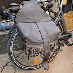 Sadelväskor är tillverkade av starkt nötläder 2mm.