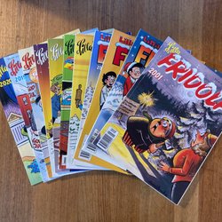 Mindre brukslitage återfinns. I bra skick. Rispa omslag finns på en tidning.