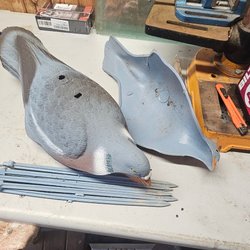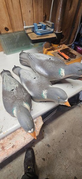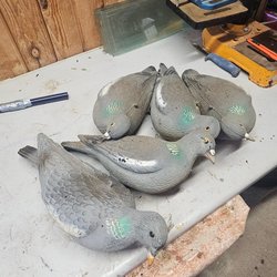 6 st duv bulvaner som kan användas för jakt eller som dekoration. Varje and har hål för stång
