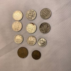 Två sovjetiska kopek. En är 5 kopek från 1988 och den andra är 15 kopek från 1981.