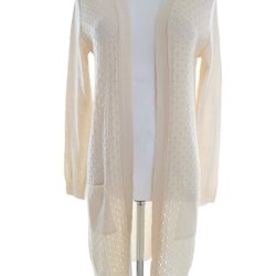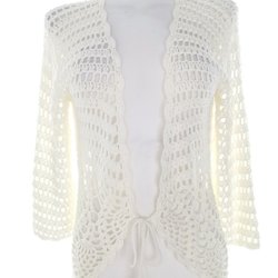 Unik och elegant Blazerkofta från Sasha i storlek M. Tillverkad av 100% akryl, denna långärmade kofta är perfekt för att ge din outfit en sofistikerad touch. Det öppna stickade mönstret ger plagget en luftig och elegant känsla, med virkade detaljer som ger en feminin touch.Enkel att bära, alltid i stil