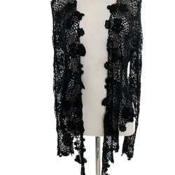 Denna svarta kofta är perfekt för att skapa en sofistikerad och tidlös look. Den långa öppna designen ger dig möjlighet att låta din personliga stil lysa igenom samtidigt som de praktiska fickorna ger dig möjlighet att förvara dina vardagsprylar på ett smidigt sätt.