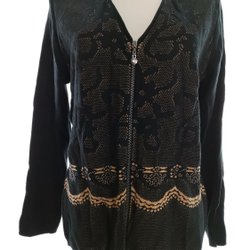 Det här är inte bara en vanlig kofta. Det är en svart koftbolero som kommer att ta din outfit till en ny nivå av stil och elegans. Med storleken L passar den perfekt och ger en smickrande passform. Tillverkad av finstickad bomull med korta ärmar ger den en bekväm och luftig känsla. Paljetterna på ärmen ger en touch av glamour och gör den till ett perfekt val för både vardag och fest.Unik och stilfull design