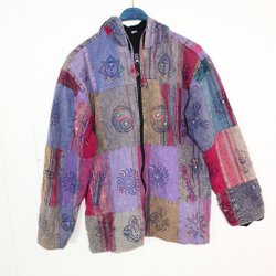 C3-304- LÅNG BOHEMISK STICKAD VINTAGE KOFTA STORLEK 42
