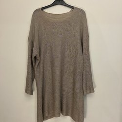 Långärmad, orangefärgad kofta med omlottdesign framtill. Koftan har en avslappnad passform och ribbstickade detaljer på ärmarna.