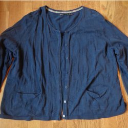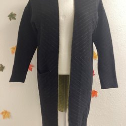 Svart och vit kofta i storlek S. Knappar fram och två fickor. 55% bomull och 45% lin.