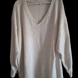Beige, stickad lång kofta med långa ärmar. Öppen modell.xl oversize.lapp saknas
