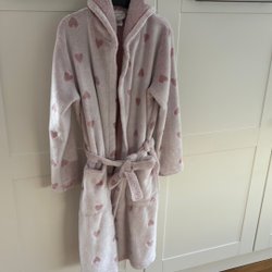 Svart och vit kofta med ett grafiskt mönster och ett rosa band.