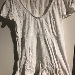 Vit, draperad kofta med lång ärm och dekorativ volangdetalj framtill. Koftan har en knapp vid halsen och en hjärtformad detalj vid ärmslutet.
