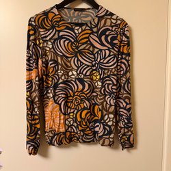 Gråmelerad kofta från Rodebjer med mörkblå detaljer vid halsringningen, knappslån och nederkanten. Koftan har långa ärmar och knäpps med knappar fram. Äldre kofta, den blåa färgen är lite urtvättad men i övrigt har den mycket kvar att ge. Skulle uppskatta det till en storlek XS-S.
