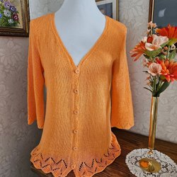 En handstickad kofta i en varm, gul färg. Koftan knyts vid halsen. Den har även två små fickor framtill. Perfekt för att lägga till ett lager av värme och stil till din outfit. Bröstvidd 98cm, Längd bak,63cm.