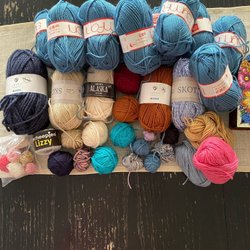Handstickad Lång kofta i olika nyanser av blått och vitt. Koftan har en rund halsringning och knäpps med ljusa knappar framtill. Ärmarna är långa och har en rak passform.