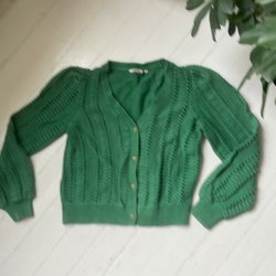 ny Grön stickad kofta med lång ärm.