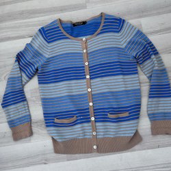 Kofta från HM med långa ärmar, rund halsringning och knäppning framtill. Koftan har två dekorativa fickor fram. Detaljer i benvitt.