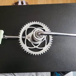 Fauber vevparti. Plockat från Monark Cresent cykel, tillverkat i slutet av 70-talet. Bra krom. Minimalt med ytrost. Lagerbanor ok. Kan förekomma lättare sårigheter. 46 taggar, 175 mm