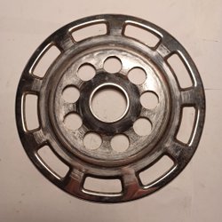 Cykelklinga i metall. Denna klinga har 46 tänder och en diameter på 18 cm. Centrumhålet är 3 cm i diameter.