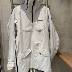 Svart och grå cykeltröja med dragkedja framtill och en röd logotyp på bröstet. Råkar fastna i något på bröstet, sticker ut en liten tråd.
