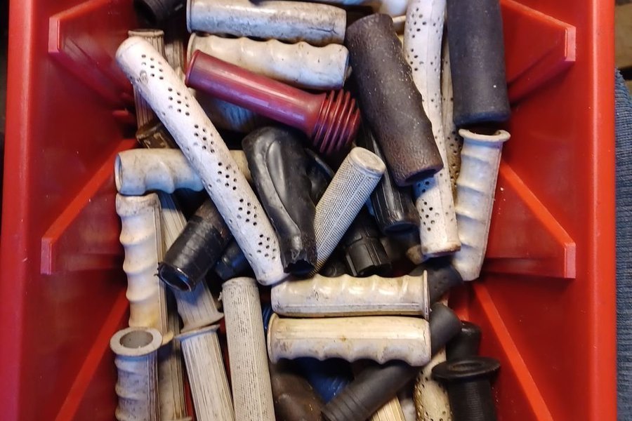 1 laddning begagnade cykelhandtag enligt bild, finns par och enstaka. Totalt 56 st. ( Obs enbart handtagen)