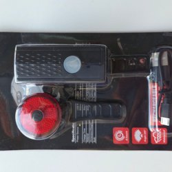 Sats med fram- och baklyse för cykel. Framlyset har vitt ljus och baklyset har rött ljus. Perfekt för att öka synligheten i trafiken.