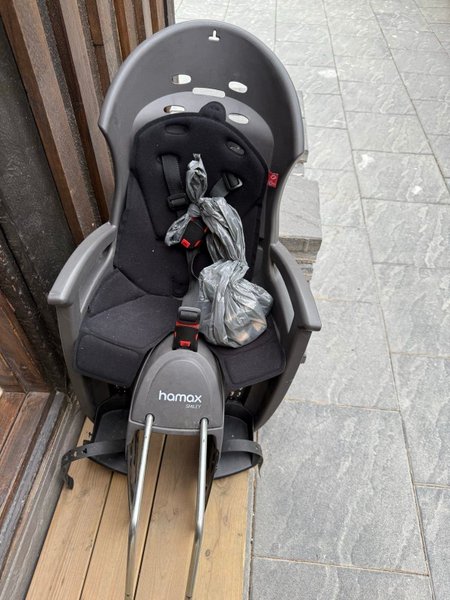 Säljer en Hamax Smiley cykelbarnstol av högre modell, med rejäl konstruktion och hög komfort. Nypris ca 1.900 kr.