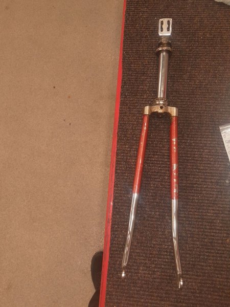Cykel gaffel i röd färg. Perfekt för att bygga eller reparera din cykel.