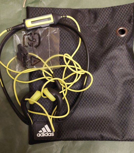 Adidas hörlurar med tillhörande påse. Anslutning stickpropp passande äldre mobiler eller om man kan hitta en adapter mellan stickpropp och nyare modellanslutning. Perfekt vid löpning eller annan träning.Bra ljud i dessa hörlurar.