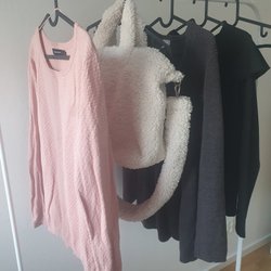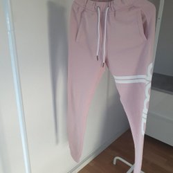 Sött pyjamasset i ljusrosa med vita prickar. Setet består av en kortärmad skjorta med knappar och ett par matchande shorts. På skjortan finns ett tryck med en sovande person och en katt, samt texten "There is always enough space for a cat". I storlek S. I mycket fint skick. Kommer från ett djur och rökfritt hem.