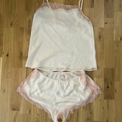 Ett set med ett linne och shorts. Linnet har tunna axelband. Har provats en gång men har aldrig använts utöver det.