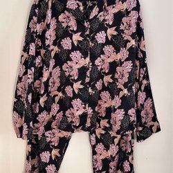 Ett set med matchande överdel och byxor. Båda delarna har ett mönster i ljusa nyanser.