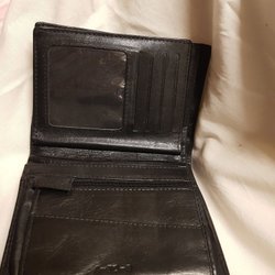 Plånbok med flera fack för kort och sedlar. Den har även ett fack med dragkedja för mynt.