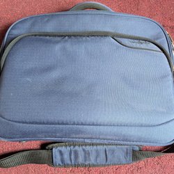 • svart datorväska med fäste för att sätta på rullväskans handtag. Många olika fack.