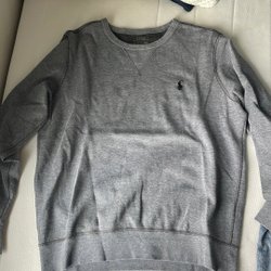 En vit tröja med långa ärmar och en rund halsringning. Tröjan har en ribbad mudd i nederkant och vid ärmsluten. Den är slätstickad över kroppen och ärmarna.