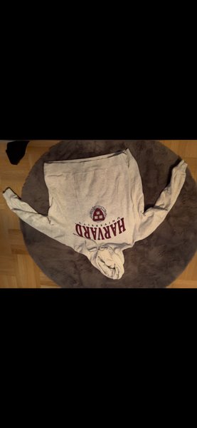 Tröja med luva och långa ärmar. Tröjan har ett tryck framtill med texten "HARVARD UNIVERSITY" och en logotyp.