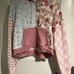 Color block hoodie från märket Teddy Fresh när de hade sin collaboration with Care Bears. Hoodien är i ljus blått, grönt och lila, samt har ett broderat tryck på TF's nalle som håller om en Care Bear nalle. Använd ett fåtal gånger.