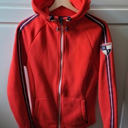 Snygg mörkblå hoodie stl XL, liten och passar stl L bättre. Är dammodell