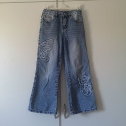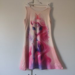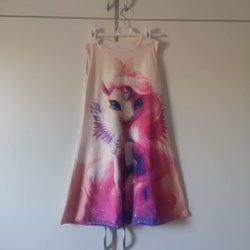 Blåa shorts med resår i midjan. Shortsen har två fickor framtill och två bakfickor. Framtill finns ett tryck med texten "Sweet" i rosa, blommor och en enhörning.