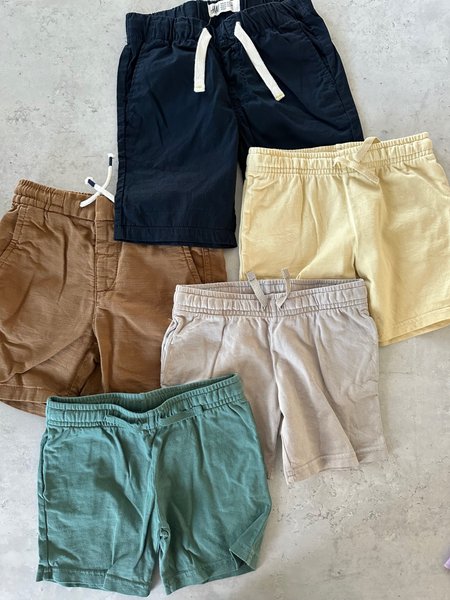 Ett paket med fem par shorts i olika färger från H&M. Storlek 104.