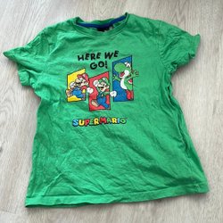 Oanvänt NWT Super Mario blå t-shirt, storlek 6/7 år