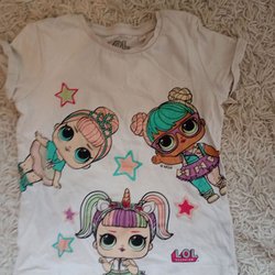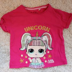 Rosa t-shirt med vita prickar, stl 110/116, H&M