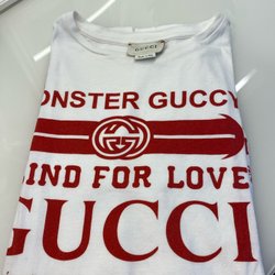 Vit t-shirt med ett tryck av en krokodil som håller en surfbräda. Texten "LETS GO SURF" är tryckt ovanför krokodilen. Det finns även tryck av en palm, en våg och sjöstjärnor.